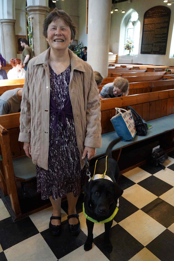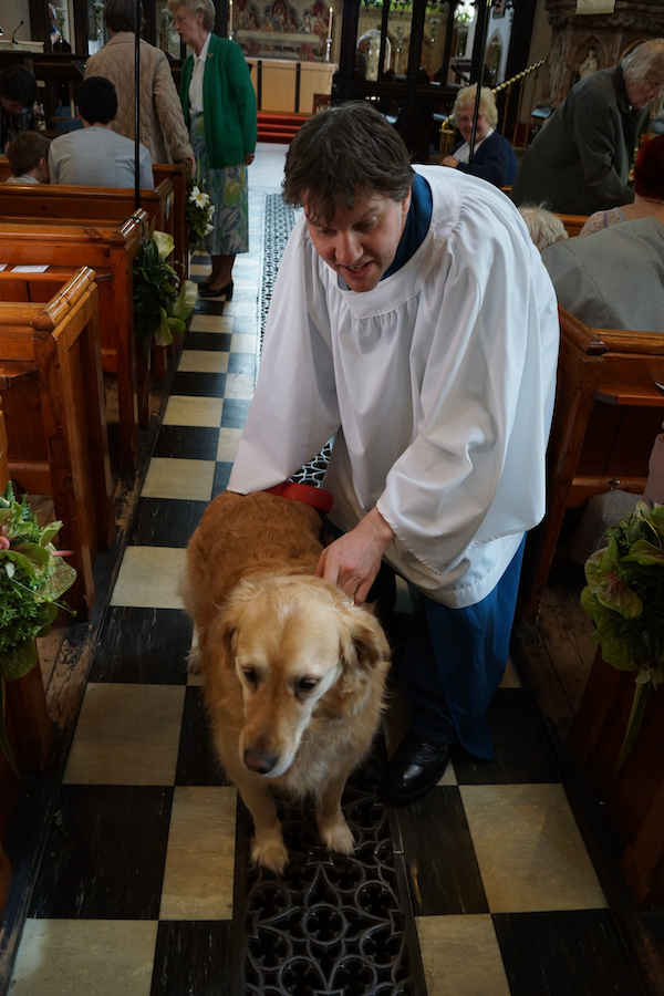 Our annual pets’ service “All Creatures Great and Small” had a guest speaker this year: Janet, with her guide dog Ellie. Janet told the congregation of humans, dogs, cats, and others all about Ellie’s work as a guide dog. The pets’ service was this year made even more special because it took place during the Epsom Mayday Flower Club’s flower festival in church, “Emerald Glory”. As well as the presence of ‘all creatures great and small’ we were surrounded by ‘all things bright and beautiful.’