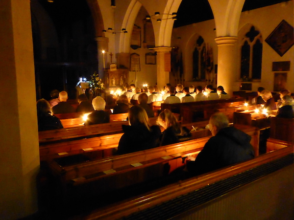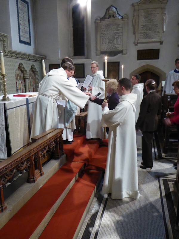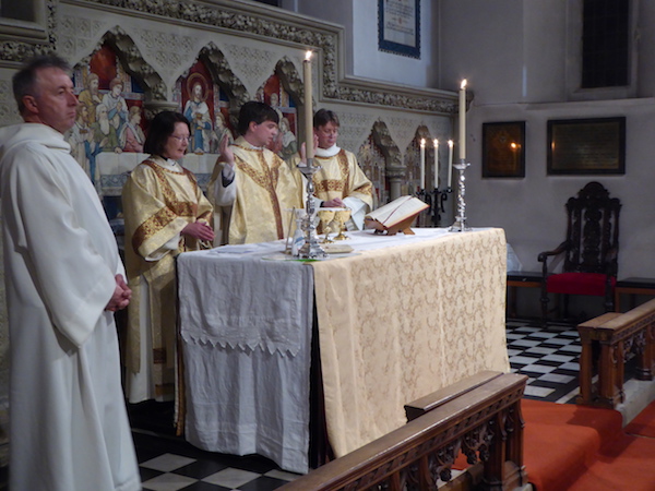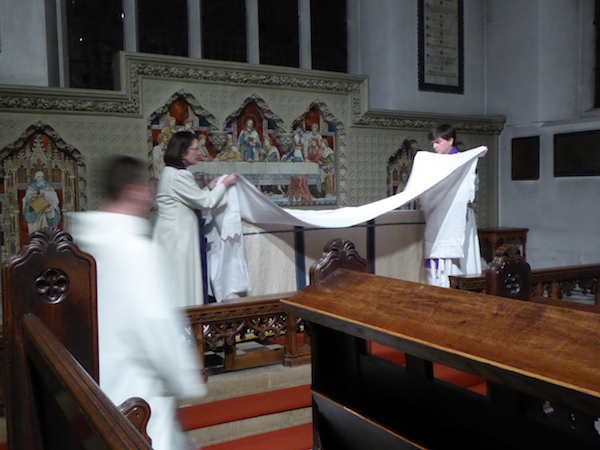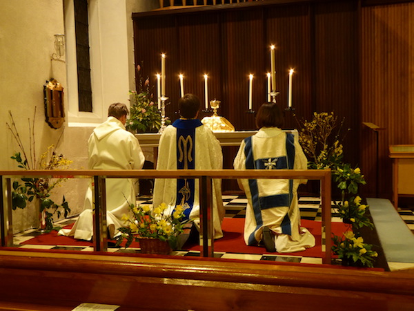At the end of the Eucharist, the Blessed Sacrament is taken in procession to the side chapel- the Altar of Repose- where it remains as a focus for prayer throughout the evening.
