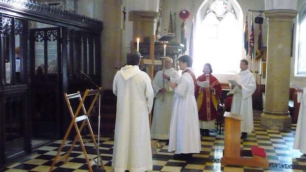 A wooden cross is brought into church as a focus for devotion, and Holy Communion is given from the reserved sacrament.
