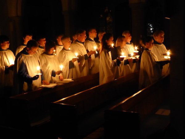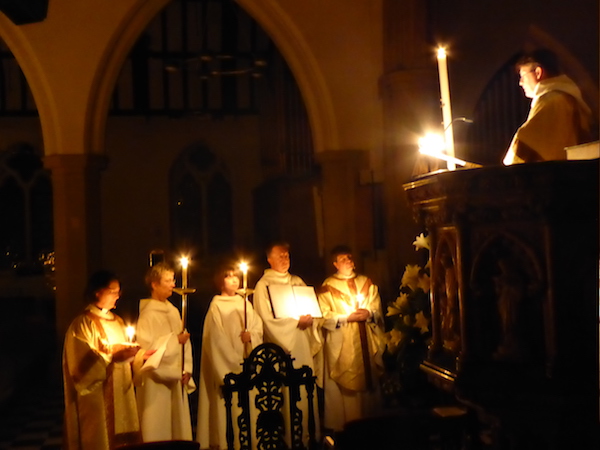 On Saturday evening, the Easter Vigil begins in darkness, as the Paschal Candle is blessed and brought into church.