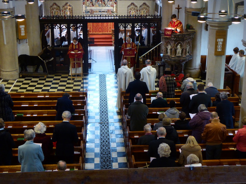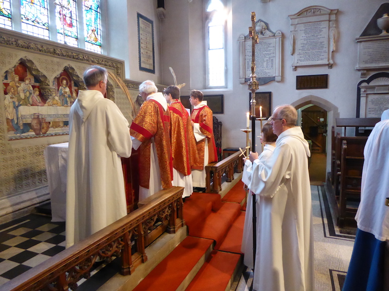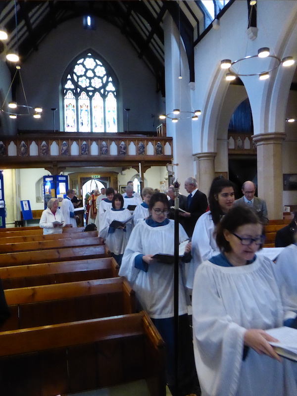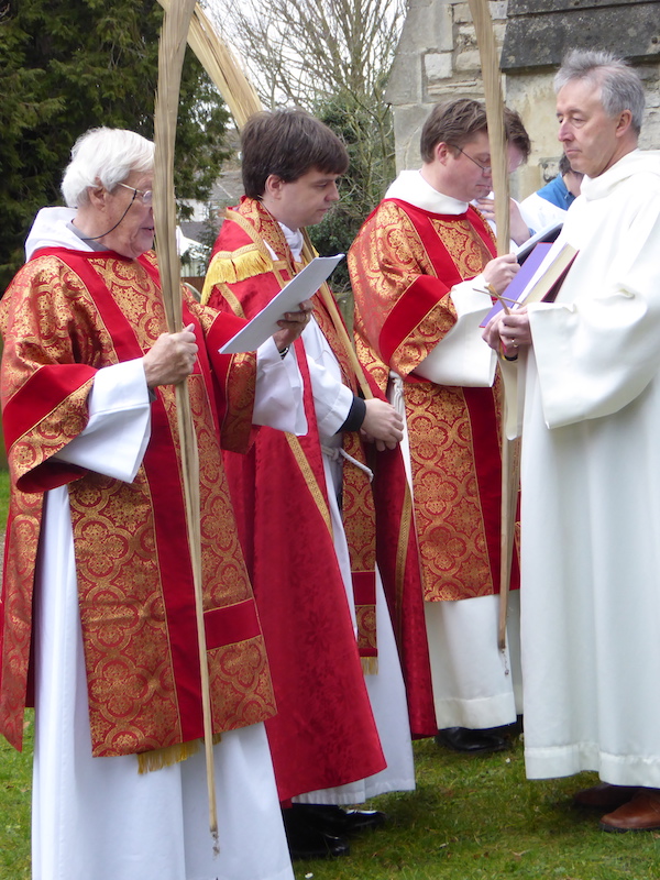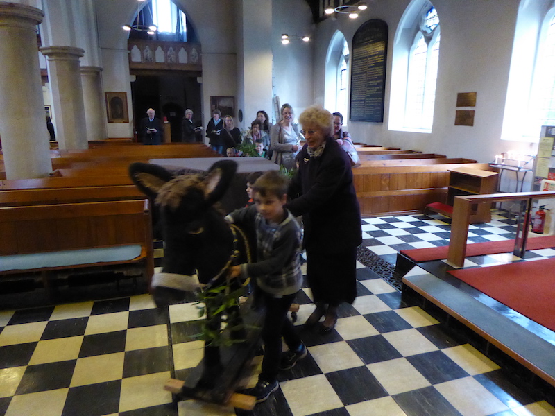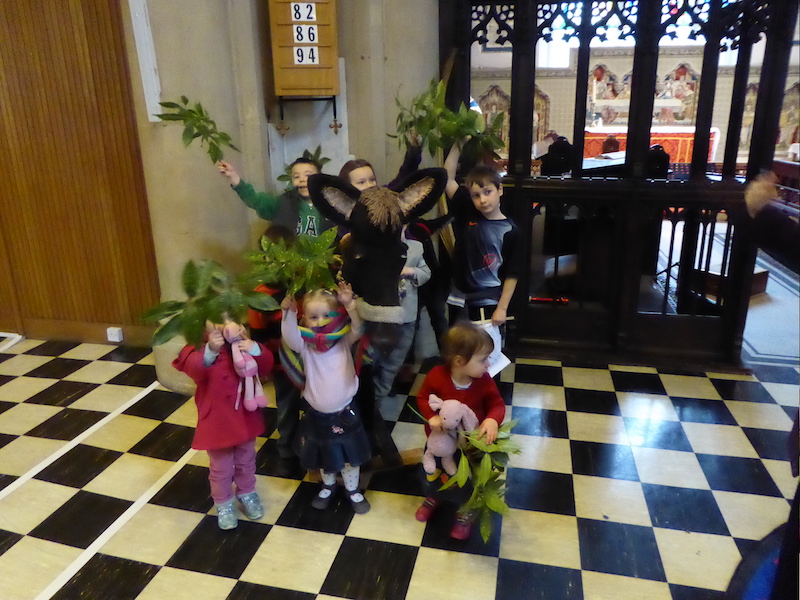 On Palm Sunday, we celebrate the triumphal entry of Jesus into Jerusalem at the beginning of Holy Week. The palms are blessed outside, and we enter the church in procession, usually accompanied by a donkey and the Children’s Hour children. During the Eucharist, the passion gospel is read dramatically. Even though Palm Sunday is not as great a festival as Easter Day (next Sunday) it was good to see well over 200 in church this morning.