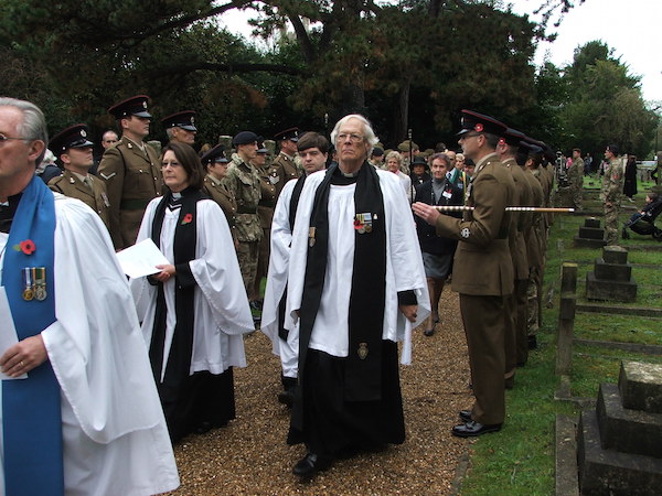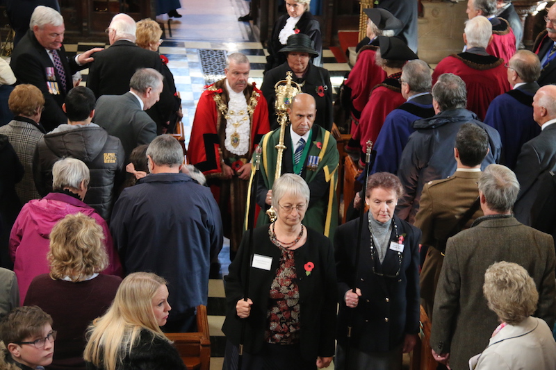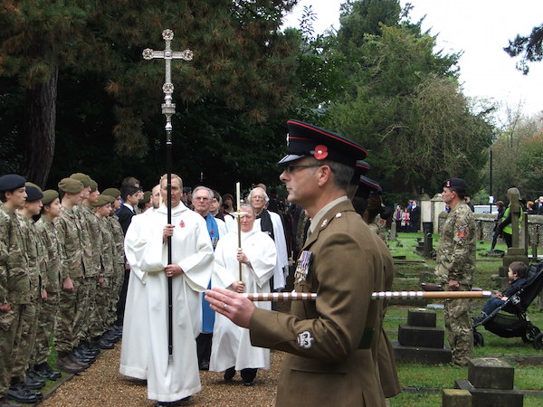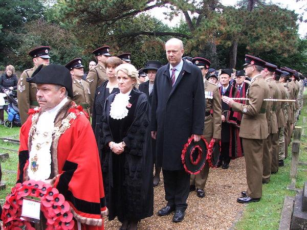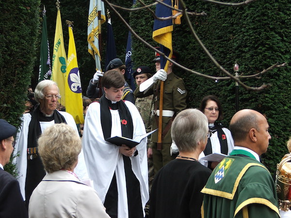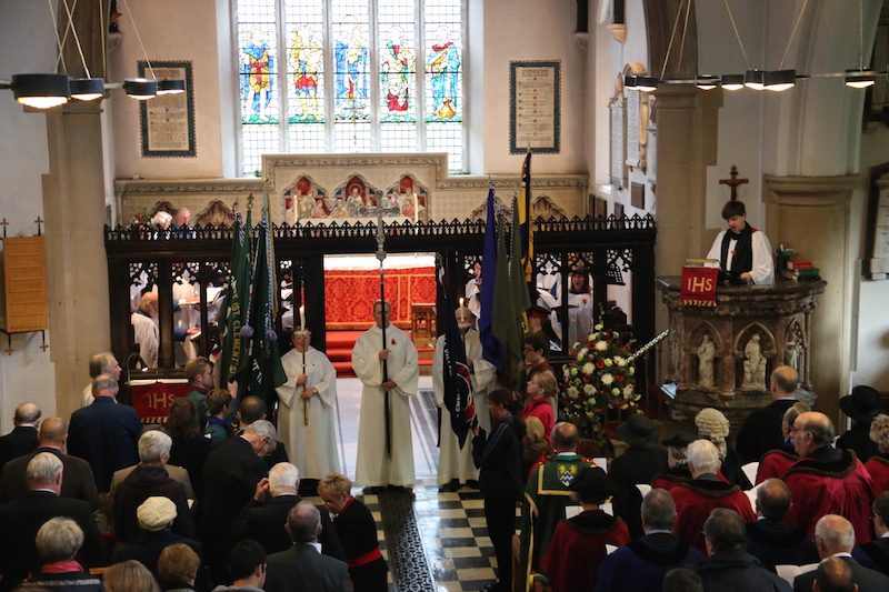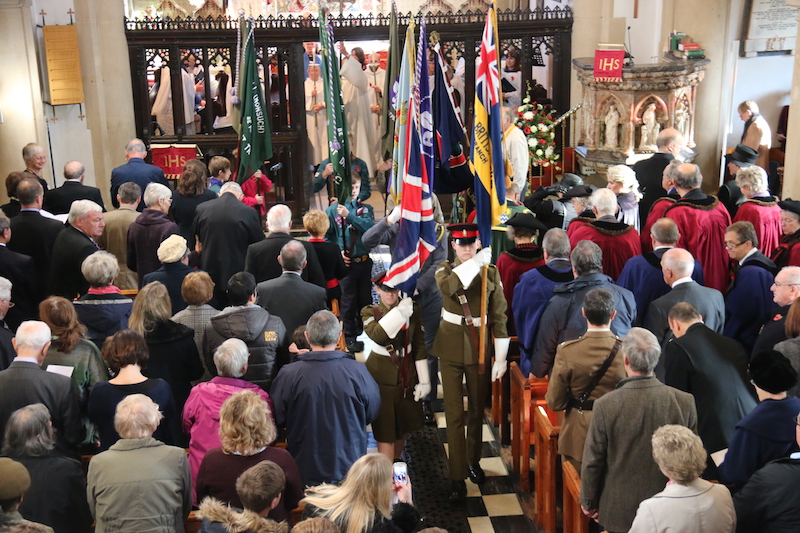 On 9 November 2014, Remembrance Sunday, the Civic Act of Remembrance for the Borough of Epsom and Ewell was held at St Mary’s, followed by Choral Mattins. The service was preceded by wreath-laying at the War Memorial. Attending were the Mayor of Epsom and Ewell, the Worshipful Robert Foote, our MP and Lord Chancollor, the Rt Hon Chris Grayling, and representatives of many local organisations, including the Royal British Legion and 135 Geographic Squadron Royal Engineers of the Army Reserve. The congregation at the church service numbered 596– a record– including fifty people standing outside listening to the service on external loudspeakers we rigged especially for the occasion.