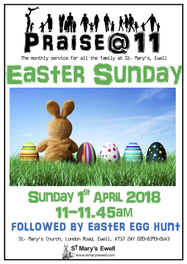 On Easter Day itself, Sunday 1 April, we begin celebrate at our 8am Holy Communion and 9:30am Sung Eucharist. We continue to celebrate at our Praise@11 all-age service which is at 11am. After Praise@11, there is an Easter egg hunt in the church grounds!