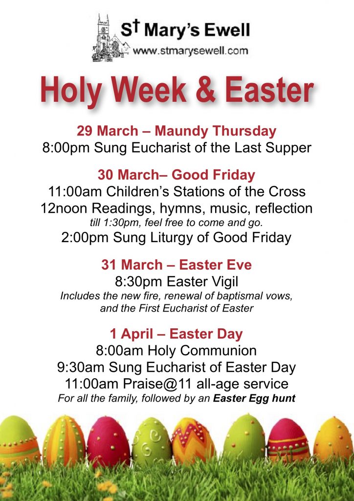 The full list of all services in Holy Week and Easter at St Mary’s is as follows: