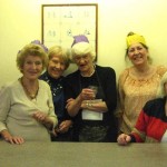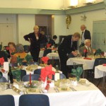 Next, a hard decision had to be made, which to choose from the three tempting desserts on offer: Sybil Hale’s ever-popular chocolate roulade, Jenny Dance’s seasonal mincemeat strudel and cream, or a cholesterol-packed Christmas trifle. Coffee and mints completed the meal and entertainment continued with moving renditions of “Ave Maria” and “Where’er you walk” in Tim Tomkins’ rich baritone. Changing to a lighter mood, he was joined by the silver-voiced Lizzy Humphries, who led everyone in singing a selection of Christmas songs. The grand finale saw Tim teamed up with Promella Mullen to perform her witty adaptation of “Daisy Daisy”.