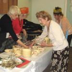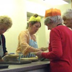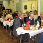 One small mishap caused momentary concern when, unable to cope with the weight of heavy garments on a bitterly cold night, the coat stands collapsed. That problem resolved, MC Malcolm Lawther called upon the vicar to say grace. Thanks to excellent service by the volunteer waitresses, in no time everyone was enjoying the first course, a delicious spinach roulade made by Gilda Everson and Lucy Piercy. Many congratulations are owed to cooks Kathie Burgess and Rosemarie Henson who produced the main course of succulent roast pork and apple sauce served with stuffing balls, croquette potatoes and mixed vegetables (accompanied by a choice of fine red or white wine).