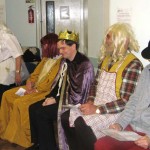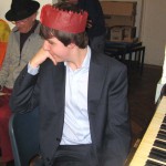 In the short interval that followed, diners were treated to an unusual pantomime performance of Cinderella by the St Mary’s Players. A more unlikely leading lady it would have been hard to find but “she”, played by a beautifully coiffured Mike Henson, managed to capture the heart of the handsome Prince Charming, none other than our vicar Russell Dewhurst. John Baxter, just returned from leading the pilgrimage to Israel, only barely managed to suppress his laughter as he narrated the story. Other parts were played by Bill Rackham, a convincing Ugly Sister (sorry, Bill), and Arthur Mathews, whose portrayal of a rotundish Fairy Godmother caused considerable hilarity. At the piano was the talented organ scholar Jonathan Allsop and authentic sounding “noises off” were provided by Gilda Everson.